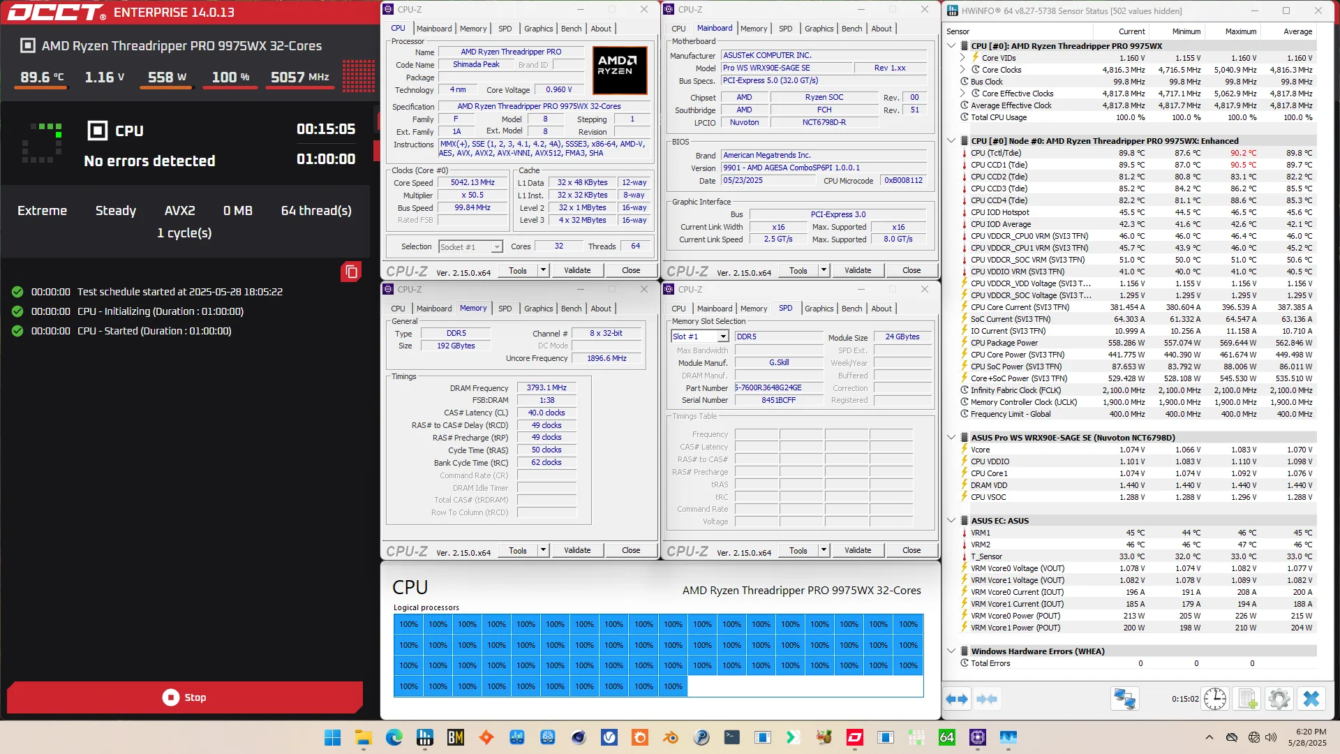 SkatterBencher #88: Ryzen Threadripper Pro 9975WX Overclocked to 5625 MHz