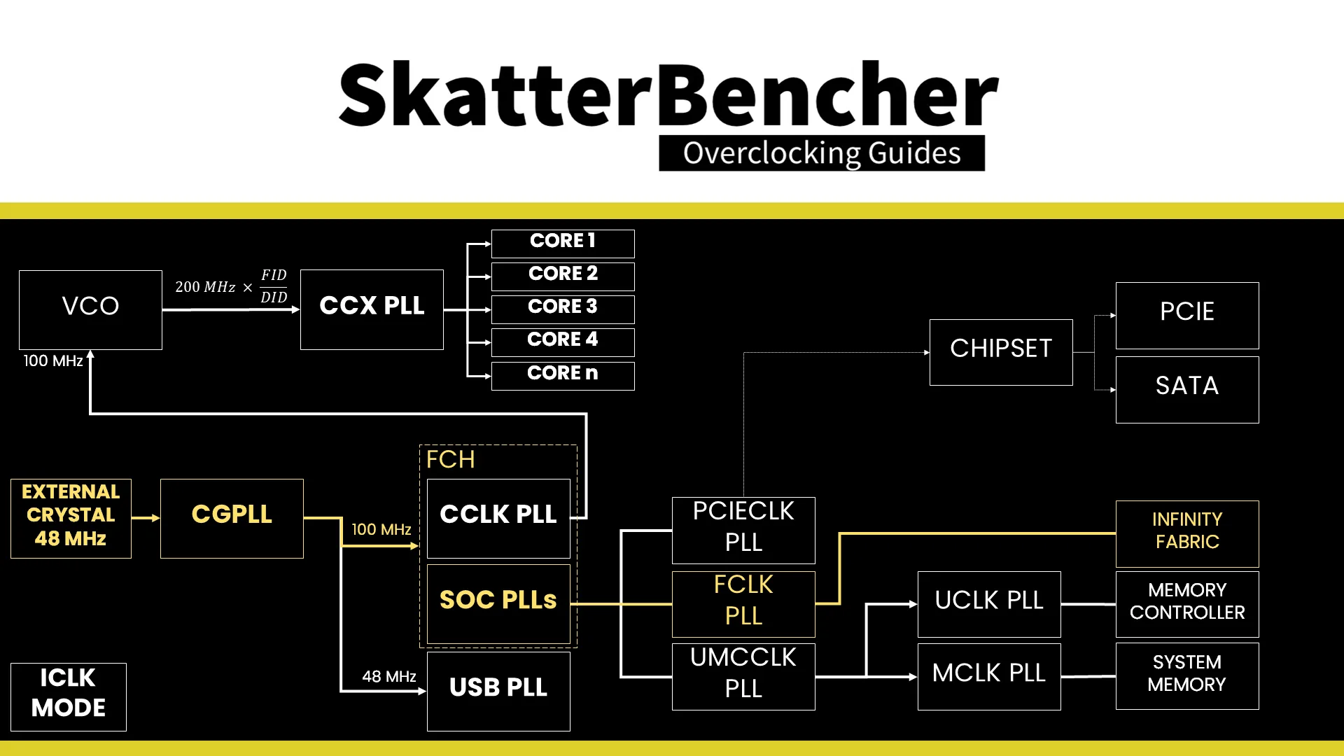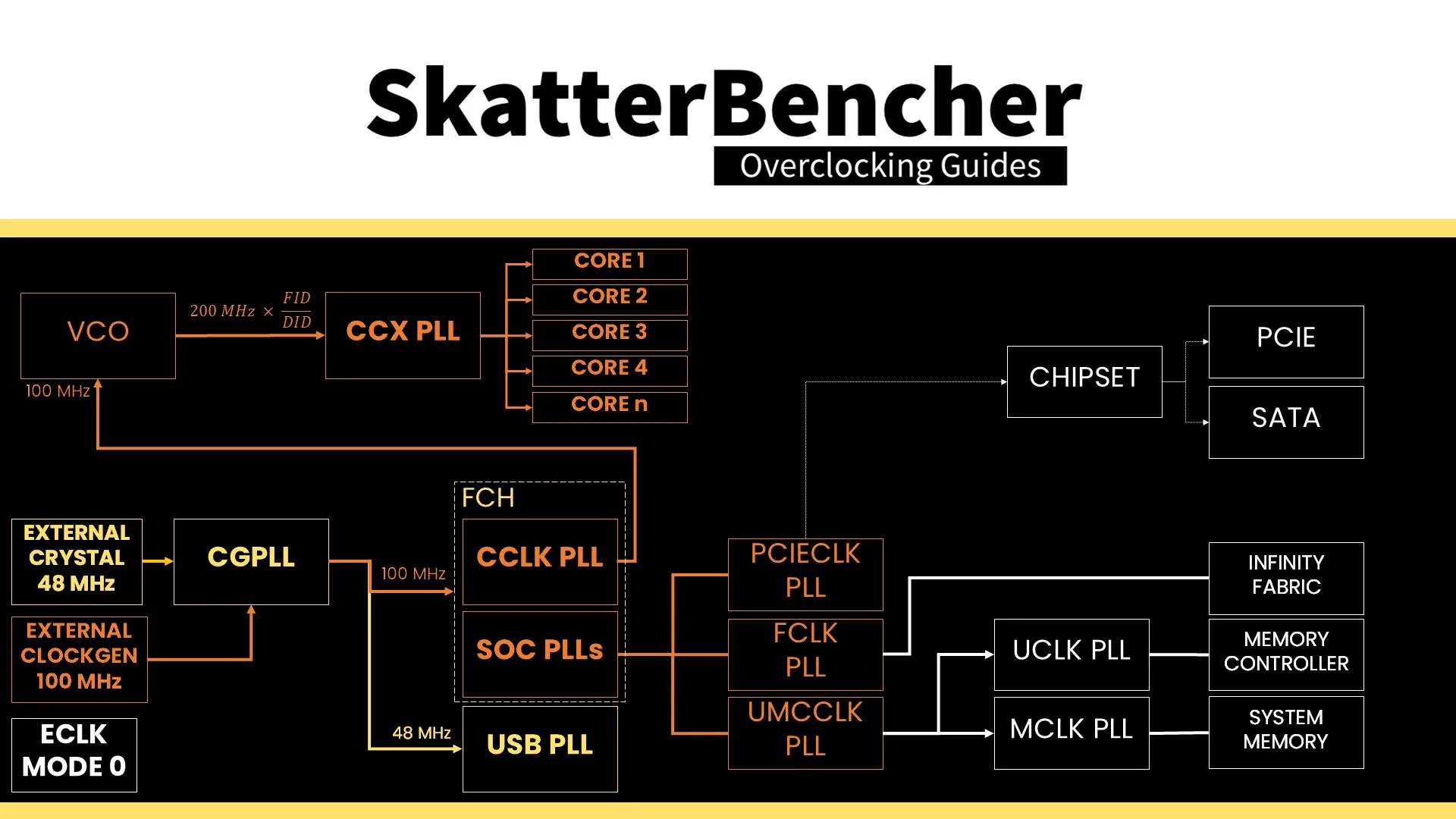The Unified Memory Controller frequency, or UCLK, is derived from the UMCCLK, one of the SOC PLLs. The UMCCLK is driven by a 100 MHz reference clock derived from either an internal or external clock generator.