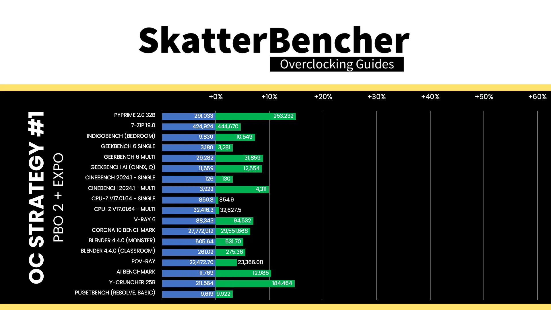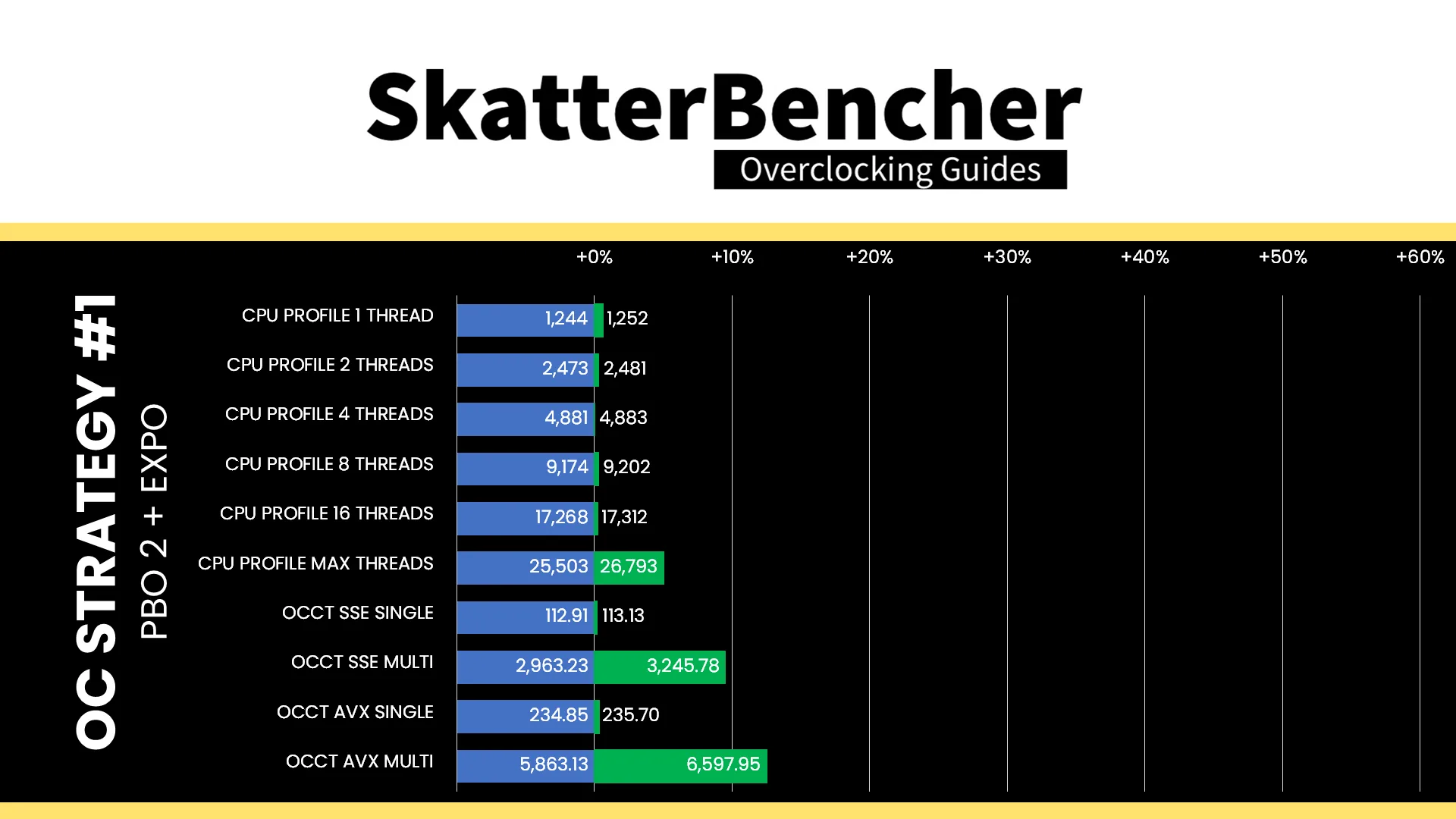 In our first overclocking strategy, we simply take advantage of enabling AMD Precision Boost Overdrive 2 and AMD EXPO.