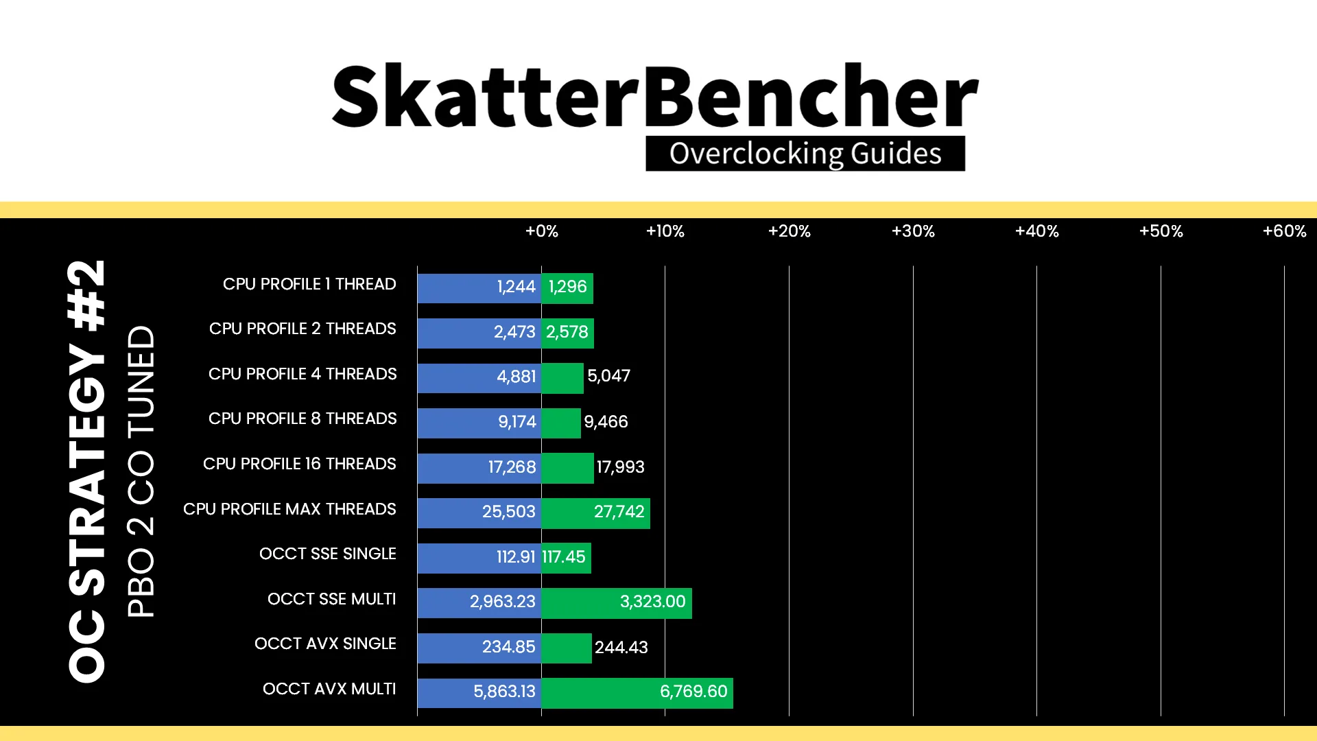 As expected, we see a pretty mixed impact on the performance as some benchmarks improve significantly over stock whereas others are actually slower than stock. That’s the trade-off we discussed before where a manual overclock disables the sky-high single-core boost frequencies of Precision Boost technology. We got a maximum improvement of +47.26% in PyPrime.