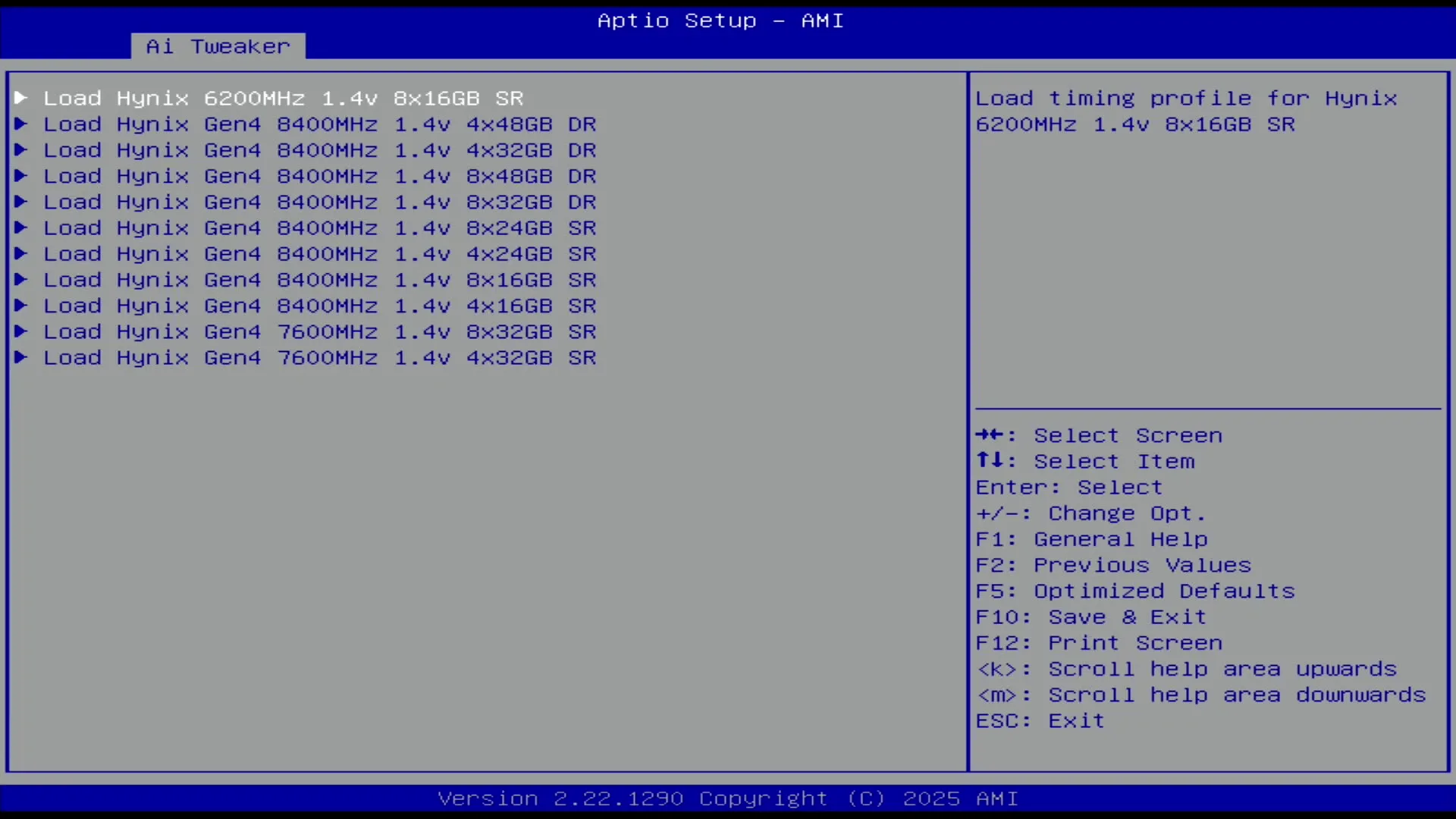 - Load Hynix Gen3 8400MHz 1.4v 8x24GB SR profile