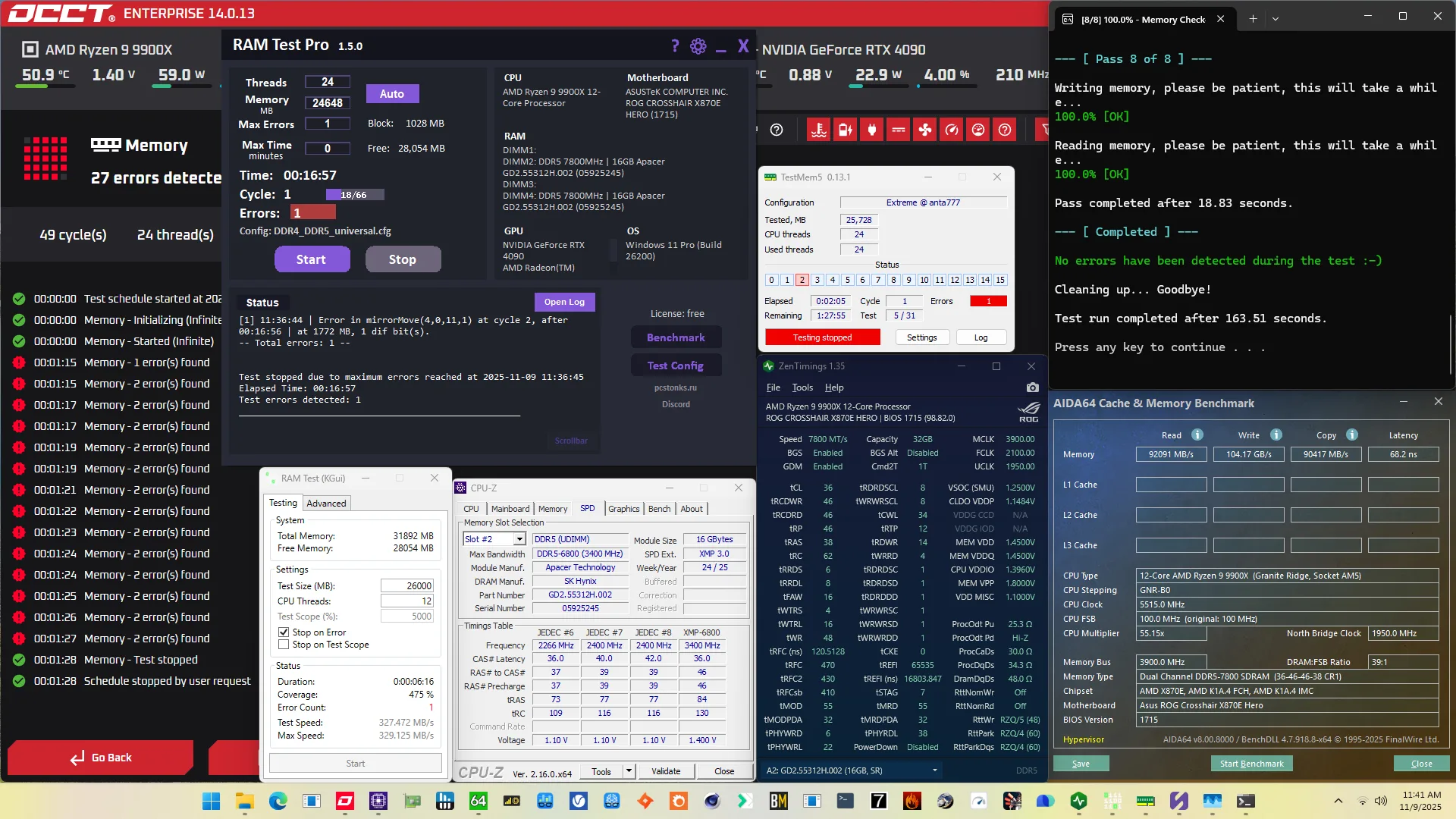 For this guide, I decided to test a bunch of stress tests with a definitely unstable configuration of DDR5-7800, and found it more confusing than clarifying.