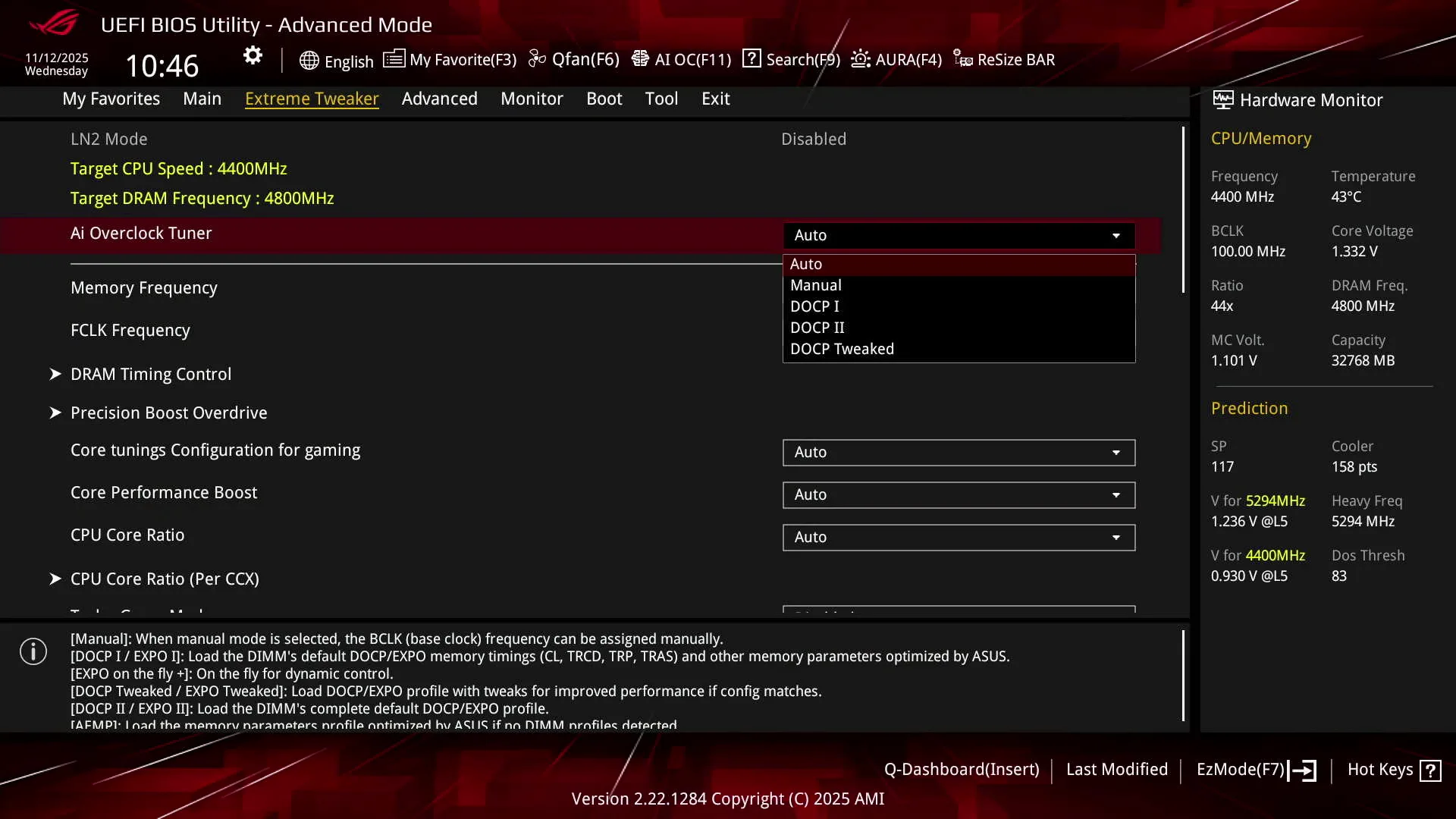 - Set Ai Overclock Tuner to DOCP Tweaked